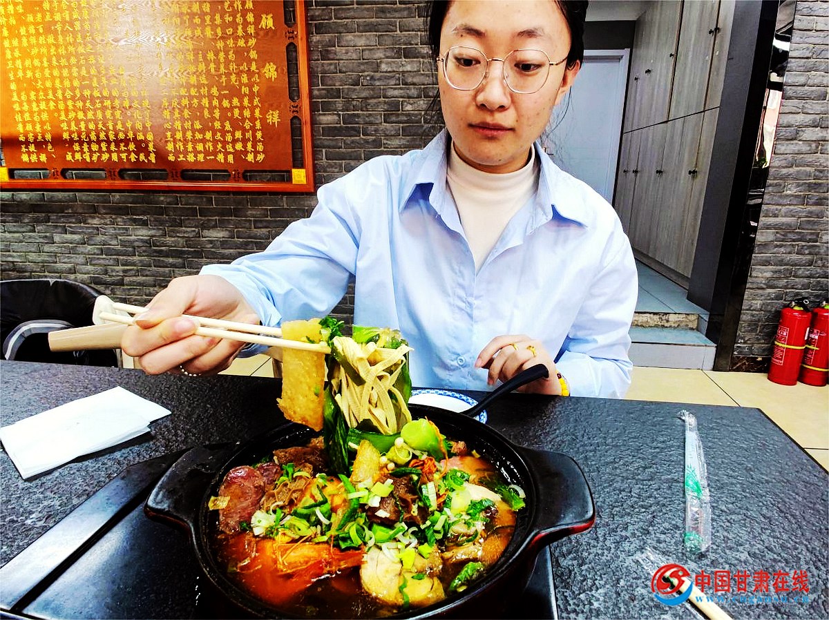 中国甘肃在线安宁讯 春天万物复苏,也唤起了味蕾对美食的期待,打卡过热辣滚烫的麻辣烫,不如再来尝一尝汤浓味美的兰州砂锅,一口有肉有菜有汤的小锅,在猛火中烧煮,咕咚咕咚冒着热气,美味就这样在浓浓烟火气中升腾。