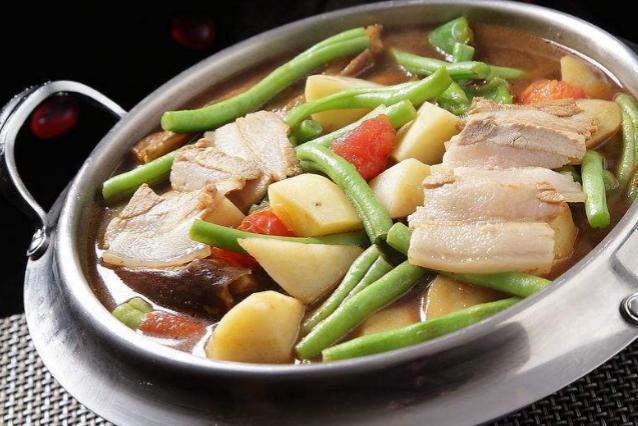 材料:五花肉,土豆,茄子,南瓜,豆角,洋葱盐,味精,黄酱,酱油,八角,桂皮。