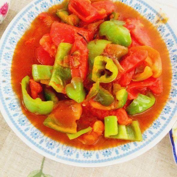 做法:1、青椒洗干净切块,番茄去皮切成块备用,姜蒜切末;