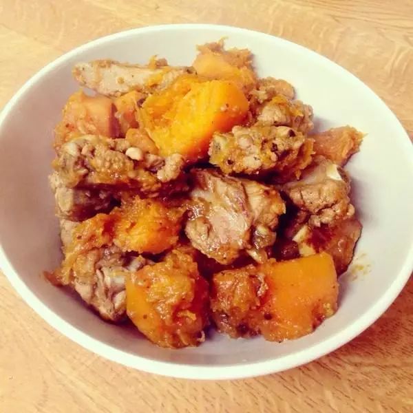1.准备食材。排骨焯水去血水,并用冷水冲洗干净,控干水分备用。南瓜洗干净切成小块状。