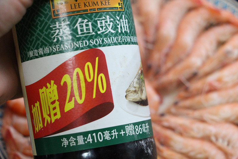 用料:新鲜虾一盘,蒸鱼豉油少许。
