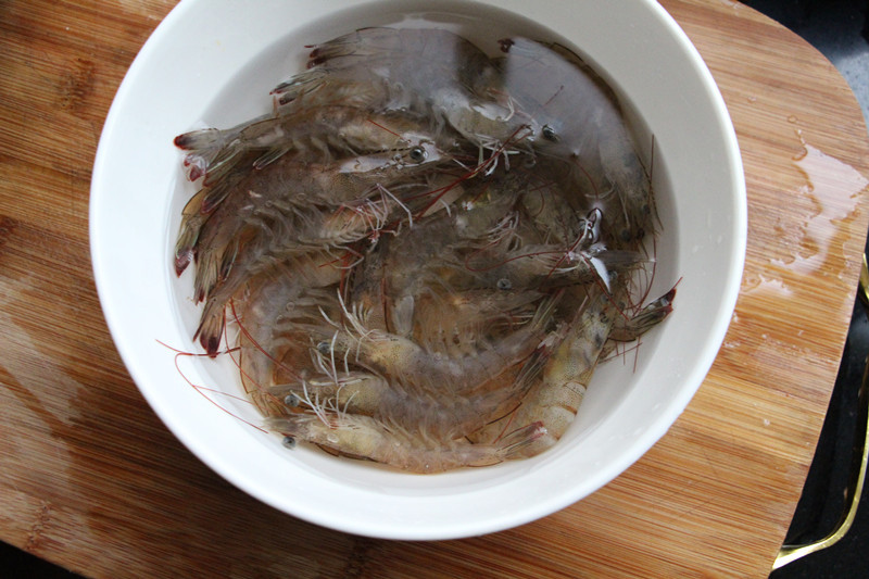 1,新鲜的虾冲洗一下。