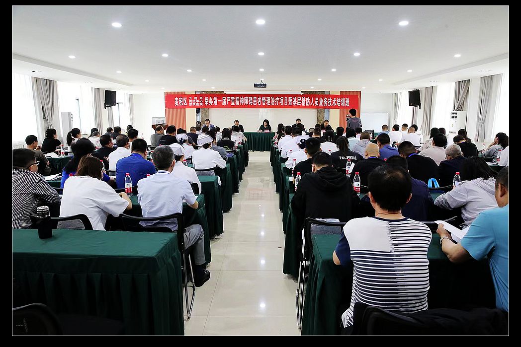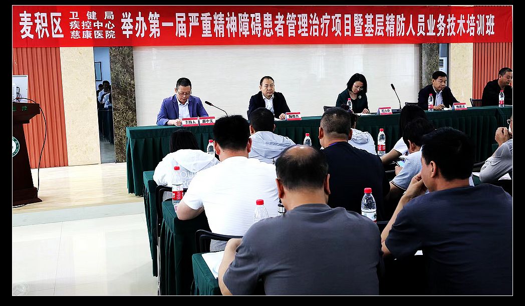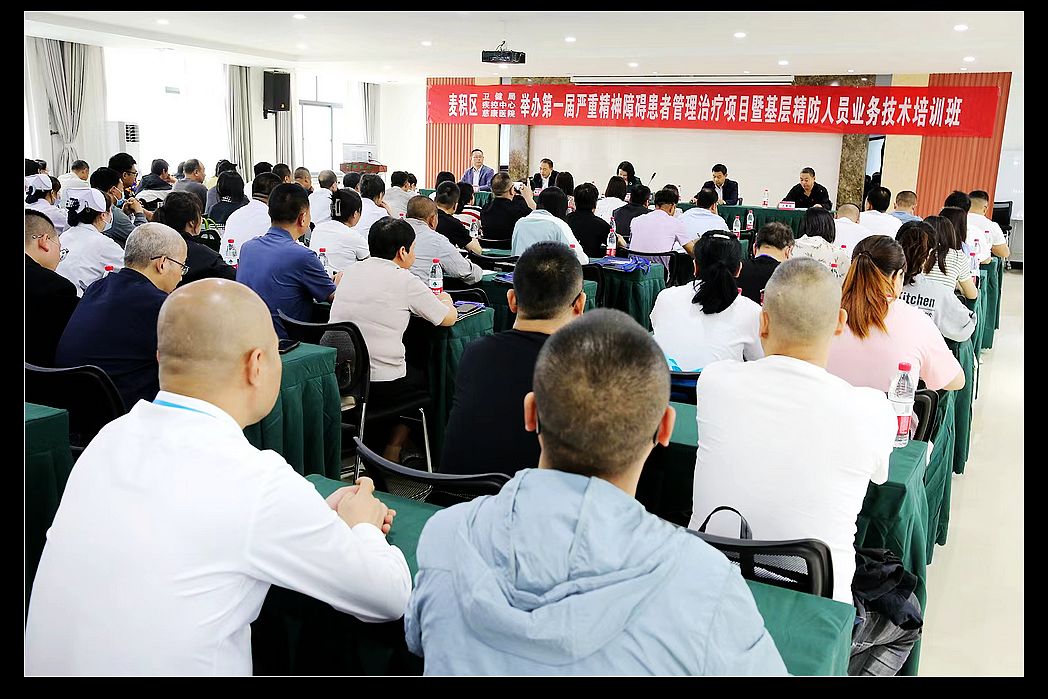 中国甘肃在线天水讯 为了进一步提高麦积区基层精神卫生防治人员业务能力,促进全区严重精神障碍患者管理治疗工作规范、有序开展,2023年6月12日上午,由麦积区卫健局、疾控中心、天水慈康医院举办的全区第一届基层精防人员业务培训班在麦积区社棠镇开班。麦积区疾控中心领导班子成员,各镇卫生院、分院人员、乡村医师,各社区卫生服务机构人员等120人参加了开班仪式。