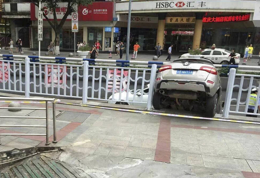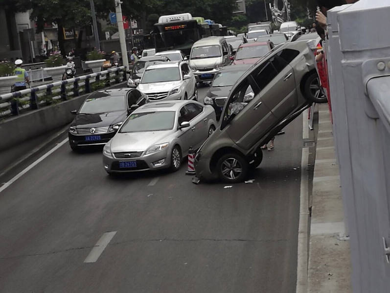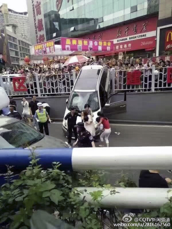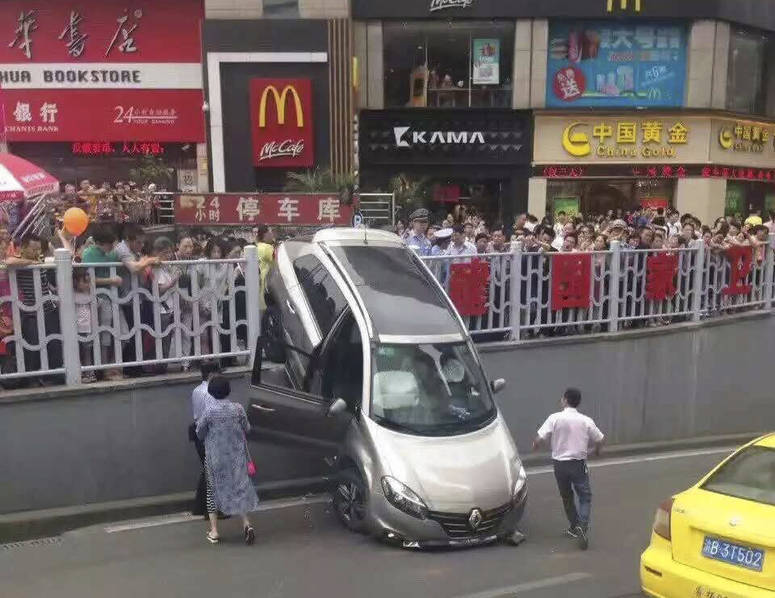 6月9日下午3点20分左右,重庆沙坪坝三峡广场发生一起车祸,根据现场目击者爆料,事情发生在三峡广场往陈家湾下穿道位置,一辆越野车从地下车库驶出时,突然撞向路边护栏,头朝下冲下堡坎。