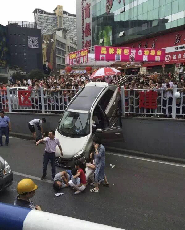 据网友爆料,沙坪坝三峡广场一停车库出口,司机油门过猛冲出围栏,车辆冲到主公路上。车主受到轻伤,救护车立即将其送往医院。有4个路人受伤,情况暂时不明。