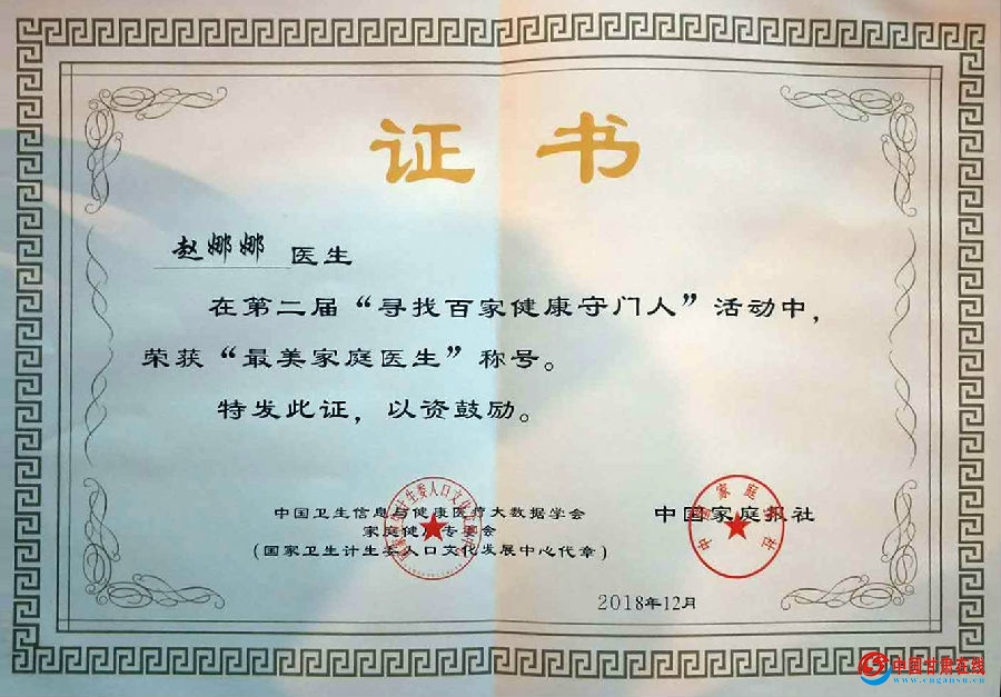 据悉,此次全国“百家健康守门人”评选活动,第二届中国家庭健康大会——“寻找百家健康守门人”活动由中国卫生信息与健康医疗大数据学会家庭健康专委会、国家卫生计生委人口文化发展中心联合主办,中国家庭报社承办。此次评选活动通过基层推荐、省市筛选、专家初评,专家复评、网络投票等环节,从全国800多名候选人中脱颖而出。活动旨在深入推进家庭医生制度建设,激发广大基层卫生计生工作者的使命感、荣誉感和社会责任感,不断提升家庭医生的初级诊疗和健康管理能力,当好群众“健康守门人”。(特约记者 窦耀辉)