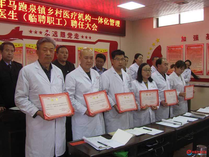 会上对慕滩村卫生室张小平等四十四名同志聘任为马跑泉镇村卫生室村医。