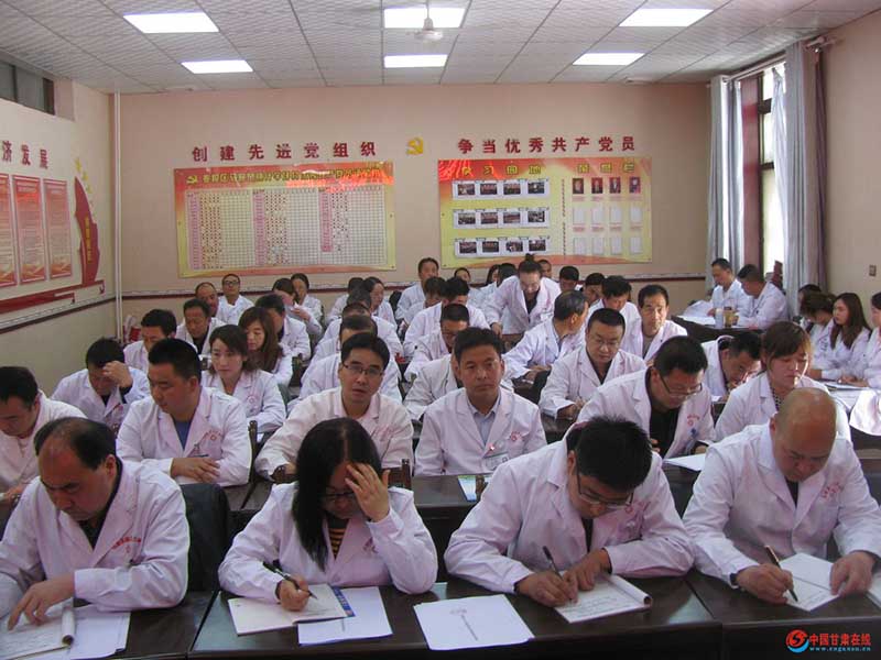 马跑泉镇中心卫生院部分医护人员及全镇27个行政村村医共60多人参加会议,会议由院长谢全红主持。