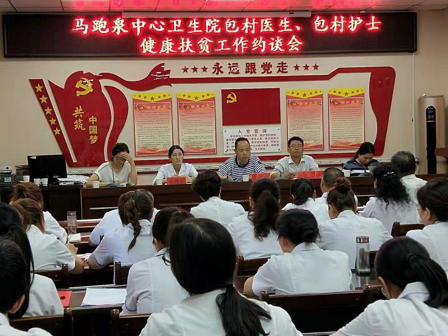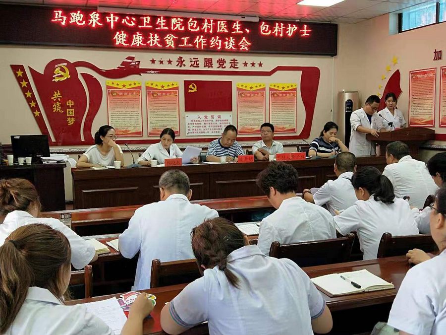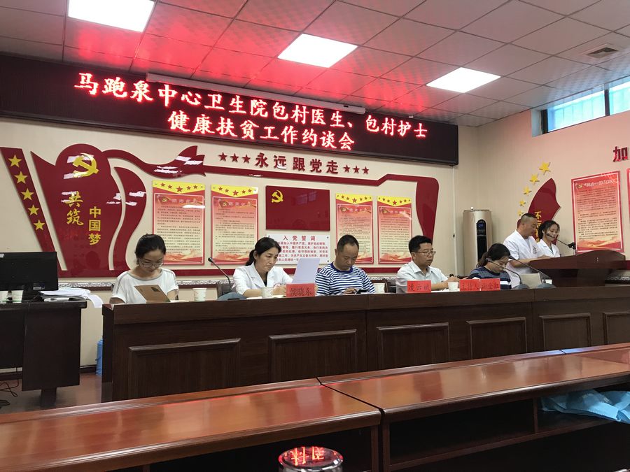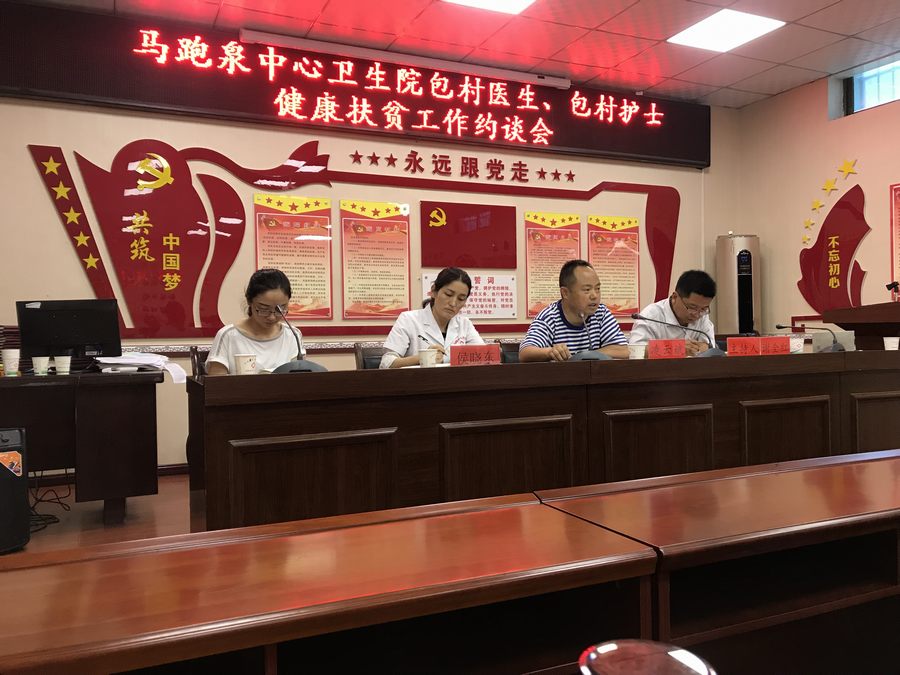 中国甘肃在线天水讯 (文/图:李凤旗)2019年8月1日,麦积区马跑泉中心卫生院召开马跑泉镇健康扶贫包村医生、包村护士健康扶贫工作约谈会,马跑泉中心卫生院院长谢全红主持召开会议,卫生局凌云斌局长进行会议指导,所有包村医生、包村护士及健康扶贫工作人员全部参加;