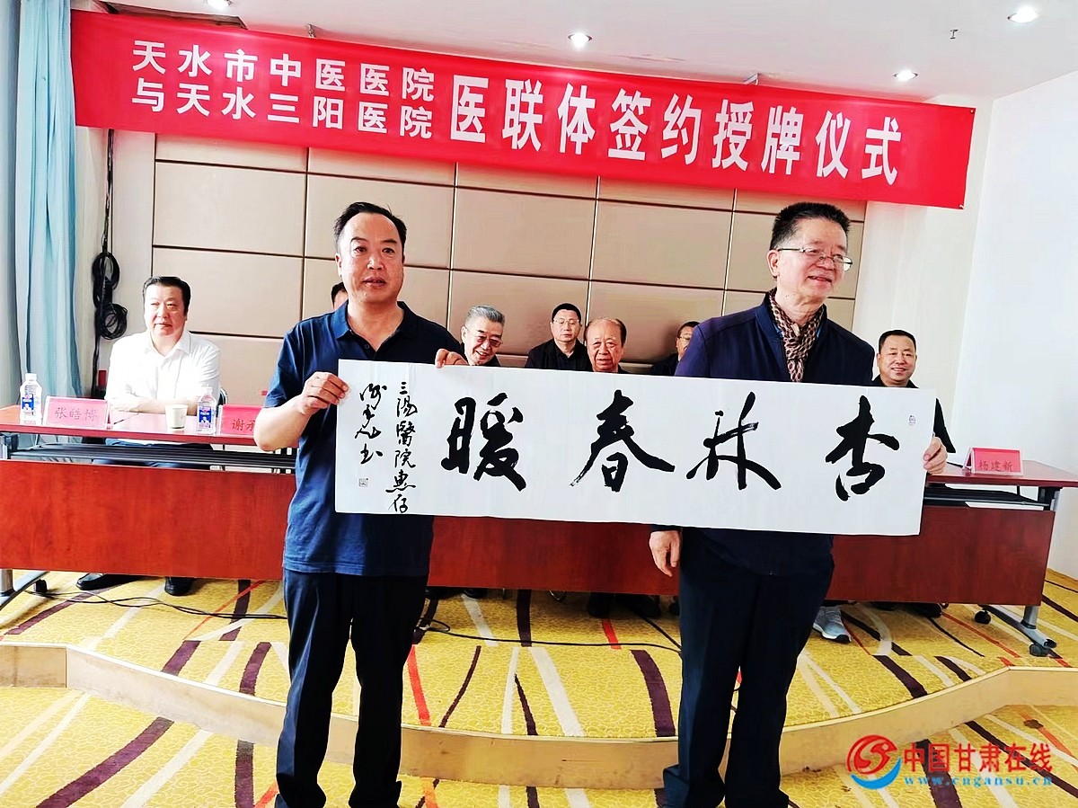 中国甘肃在线麦积讯(李凤旗报道)5月29日,天水市中医医院与天水三阳医院举行医联体签约授牌仪式。