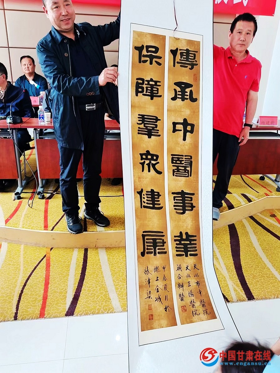仪式上,天水市中医医院与天水三阳医院进行了医联体协议签约、授牌并共同揭牌。甘肃省政协原副主席张津梁与甘肃省食药局原巡视员、书法家谢承旭分别向天水市中医医院与天水三阳医院赠送书法作品。