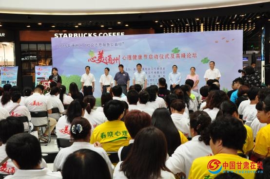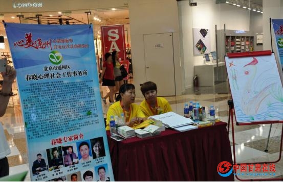 中国甘肃在线讯(记者 常魁星)7月15日,“心美通州”心理健康节启动仪式暨社会心理服务与北京城市副中心建设高峰论坛在通州万达广场举行,这是北京市通州区首次举办以心理健康为主题的社会志愿服务公益活动。通州区委社会工委、区社会办组织春晓心理社工事务所、北京众合社工事务所、德仁心理社工事务所等19家驻通专业社会工作机构,用心理剧、音乐、绘画等多种形式,开展社会心理服务,进行社会柔性治理模式的尝试和探索。
