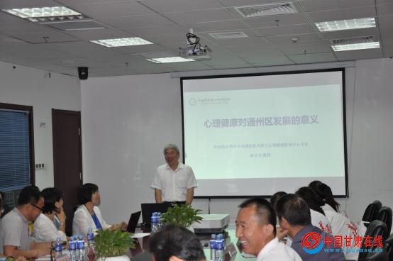 与会领导向北京市社会心理工作联合会通州工作委员会授牌。启动仪式结束后,召开了首届“通州区社会心理服务与北京城市副中心建设”高峰论坛。北京陆军总医院副主任医师肖利军、中科院心理所祝卓宏教授、北京市社会心理联合会副会长熊汉忠博士、北京工业大学实验学院副教授彭宏伟、北京财贸学院副教授王剑博士、北京中医药大学陈捷教授等相关专家,对社会心理服务与北京城市副中心建设、通州区社会心理服务的发展方向和模式进行了研讨与交流。