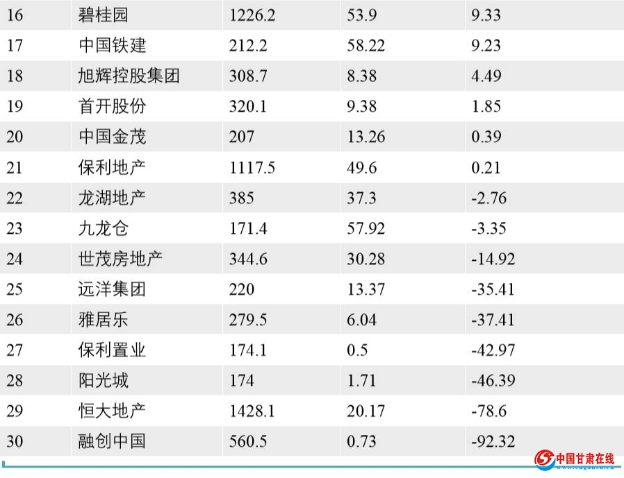 中国房地产报记者统计发现,即便如中国恒大、融创中国[-0.20%]、阳光城[0.00% 资金 研报]、保利置业、远洋集团、雅居乐、世茂房地产[-1.08%]、九龙仓这样的全国销售前30强房企,也出现销售额增长但净利润却同比下滑的尴尬局面。