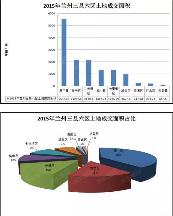 2015年兰州三县六区公开出让各类土地面积达17303.51亩。其中,通过招拍挂和协议出让手续公开出让土地面积达到13877.11亩,政府无偿划拨各类居住用地3426.39亩地。