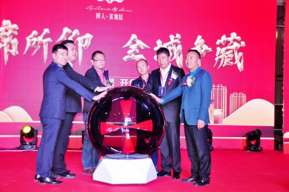最后,甘肃来恩房地产开发有限公司董事长韩琪锦先生、甘肃雅之居房地产开发有限公司董事长张弛先生、雅之居地产副董事长何军先生、雅之居地产总经理张海军先生、甘肃来恩房地产开发有限公司总经理唐利琛先生、树人中学校长蒲冠儒先生上台,共同按下树人·莱雅居项目的启动球,叫号选房阶段正式开始。