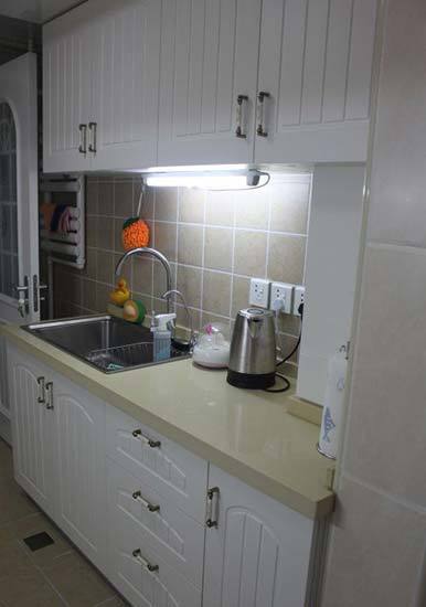 先说一下房屋基本情况,使用面积70多平(阳台占掉14平),把一个墙体拆掉后打通变成两室一厅。我的厨房非常小了,还要放下冰箱不容易啊