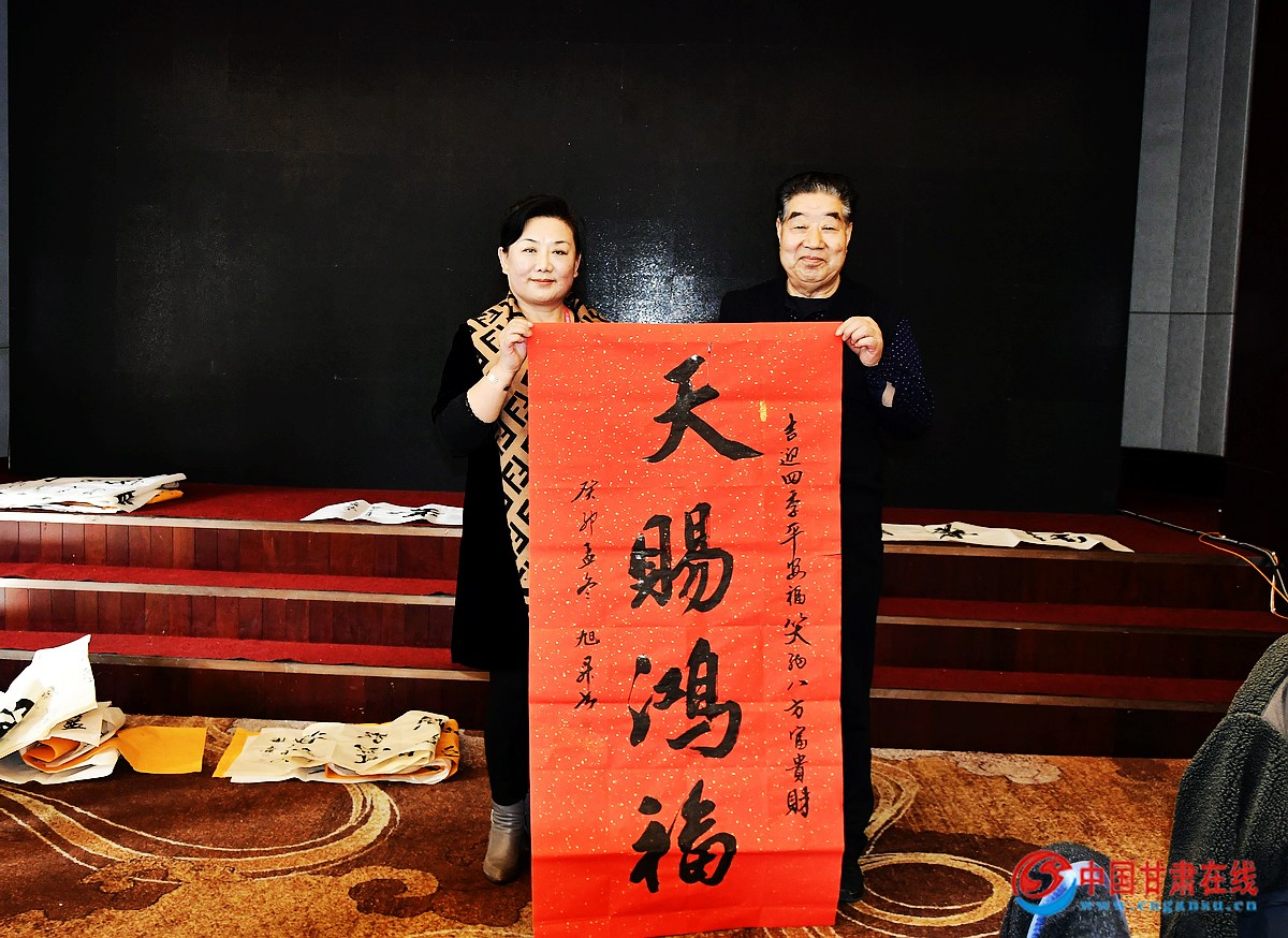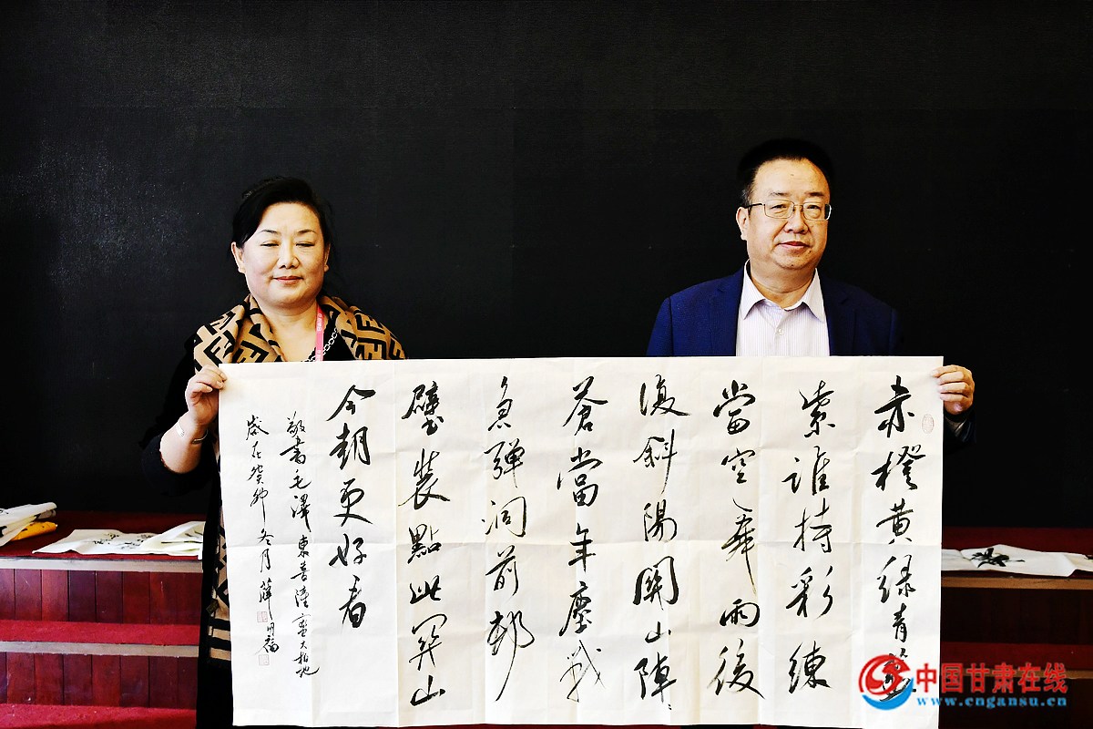 甘肃省丝绸之路协会副秘书长谢长锁为王艺璇女士赠送墨宝