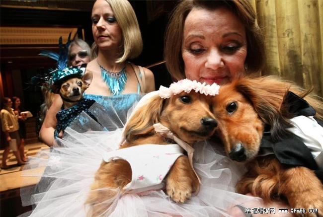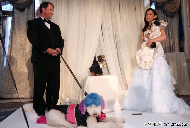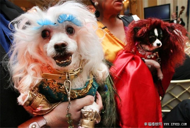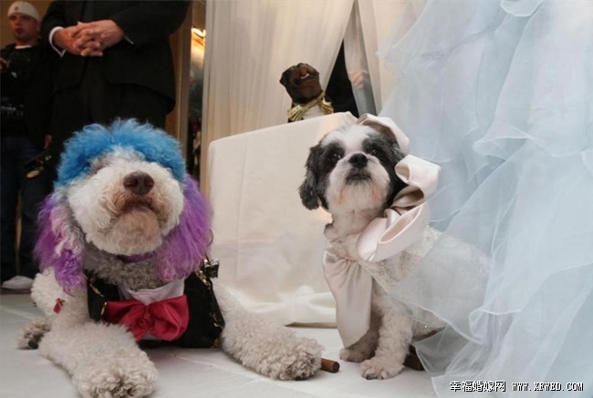 在美国,很多人愿意花钱为狗狗们穿上“婚纱礼服”,举办一场“奢华”的婚礼。