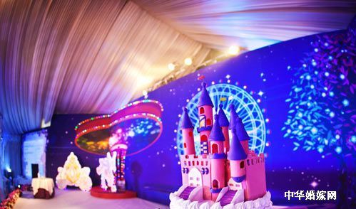 城堡、旋转木马、星空在舞台处都得意展现 灯光、舞台、音乐:梦田婚礼灯光创意