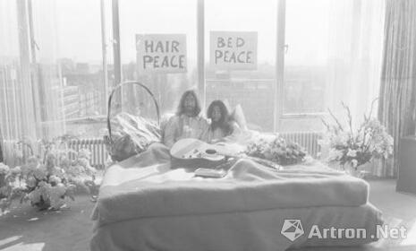 1966年,约翰·列侬(John Lennon)认识了小野洋子(Yoko Ono),当时的列侬已经是家喻户晓的披头士主唱。但在结识小野洋子之后,他逐渐开始远离自己既有的创作方式,与她合作了一些更具有先锋性的音乐、艺术。当时恰逢越战如火如荼,二人也积极参与反战的活动,1969年,在“要做爱,不要作战”的主旨引导下,他们创作了一件名为《上床》(Bed-in)的作品,在阿姆斯特丹、蒙特利尔等全球各地城市开一个房,邀请记者来看他们待在床上,宣传和平理念。列侬替他这种看似偏激的行为命名为“床上和平运动”。他说“武力不会对和平有任何帮助,任何人都可以通过躺在床上一星期而获得和平,在寻求和平的各种方法中这是最简单又最有效的”,他们的口号是“give peace a chance”。