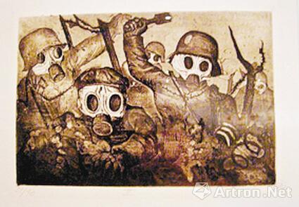 奥托·迪克斯(Otto Dix)是一个敏锐的观察者,他认为世界是“可怕的和美丽的”,没有中立的观点。迪克斯早期以各种风格作画,从印象派到立体派,最后以无政府主义者的叛逆表现而转向达达派。后来又转向现代主题,转向一种相对来说更为写实的处理手法。毒气和阵地战的残忍使迪克斯感到恐怖,他在画中坚决地给予揭露。迪克斯那些反映战争题材的版画总是具有极强的视觉穿透力,它总是以某种难以名状的恐怖氛围和令人毛骨悚然的画面紧紧抓住观众的目光,震慑着人们的心灵。二次大战后,迪克斯摒弃了写实方法而以明确的表现主义进行创作。观看迪克斯的许多作品,都会隐约感觉到德国中世纪宗教绘画的影子,只不过,迪克斯要做的不是宗教的精神救赎,而是现实层面的社会救赎。