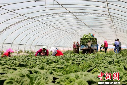 甘肃张掖市甘州区明永镇万亩戈壁设施蔬菜产业园里一片绿意,菜农们穿梭在蔬菜大棚间,收获今年的第一茬娃娃菜,张掖市绿涵农产品有限责任公司董事长王建学说,“现在的菜主要销往广东、江苏等地,到六七月大部分蔬菜会出口到俄罗斯。”