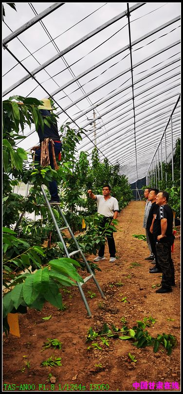 上午11点,来到中滩镇汪李村天津市援建的设施大樱桃园。中滩大樱桃园占地102亩,其中设施大棚栽植大樱桃10栋70亩,露地栽植大樱桃30亩。设施栽培4年生大苗,天水果友管理技术及时跟进,当年栽植,当年开花,当年挂果,当年量产,当年收益。同时吸纳建档立卡户30多人常年就业,月收入在2000元以上,成为品牌产业,致富产业,扶贫亮点产业。设施大樱桃于4月中旬成熟上市,热销售罄,受到消费者的高度赞扬。技术专家与产业园负责人深入交流探讨,一个大棚一个大棚,一株树一株树的看,大樱桃进入花芽分化期和新梢封顶期,部分新梢开始二次生长期,针对每株树的情况,提出具体管理方案。实操示范,或拉枝下垂,或扭枝造伤,或抑顶,或水肥一体化补肥,或叶面喷施营养,病虫害防治,列出治疗施药方案,目的是调控生长、恢复树势,促进花芽分化;对当年露地栽植的大樱桃苗,定干后没有及时抹去2-4芽,形成的多头竞争,提出保留一个主干,其余枝条拉枝下垂,控制营养生长、促进花芽分化的手法,培养树形,秋冬季再整形修剪的方案,并进行实操示范;对苗木培育区苗木,同样存在多头竞争的问题,因树因枝制宜,促进生长发育,尝试高压扩繁苗木;针对闲置大棚,提出充分利用,建立嫩枝全光雾扦插繁育苗木的建议。果园管理指导持续两个多小时,受到果园管理人员的衷心感谢。