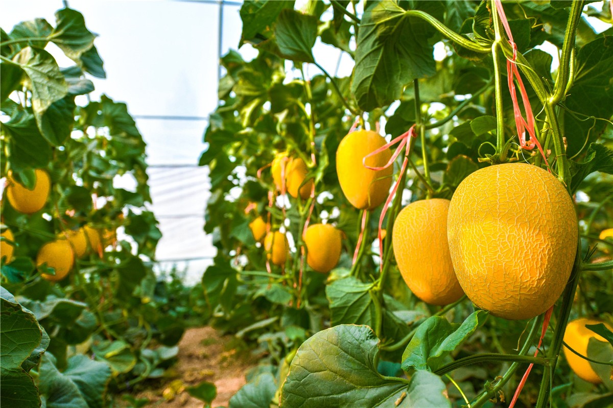 7月盛夏,正是密瓜的成熟季,走进敦煌市国家级现代农业示范区中心园区温室大棚,映入眼帘的温室内一个个成熟诱人的金色蜜瓜,只见青翠葱茏的藤蔓上,悬挂着一个又一个金黄色、沉甸甸的大密瓜。一阵微风吹来,空气中弥漫着瓜果清香,让这片“红火”的金土地充满丰收甜美的味道。
