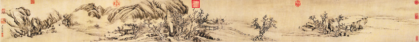 纸本,纵27.5厘米,横265厘米。弘旿(1743-1811),姓爱新觉罗,清宗室,封固山贝子。字卓亭,号恕斋,一号醉迂,别号瑶华道人,又号一如居士。能诗,工书画,以三绝称。山水花木俱承古人,治石印得元、明人之规矩。