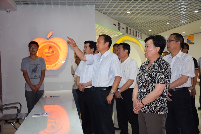 苹果产业是静宁的特色主导产业。平凉金果博览城项目一期工程于今年6月底建成并试运营。该项目规划建设果品展示中心、信息发布中心、市场交易区和果品气调保鲜库等,对延伸静宁苹果产业链条、提升果业综合效益、增加农民收入具有重要意义。观摩组实地查看了博览城的展厅布局、电子商务服务中心,观看了有关资料片。郝远指出,静宁拥有丰富的苹果资源,发展果产业和苹果精深加项目前景好、潜力大,要依托独特的资源优势,紧紧抓住建设“丝绸之路经济带”的重大机遇,充分利用电子商务,积极引导开展果品信息发布、网络市场营销,有效拓宽果品流通渠道,简化流通环节,增加农民收入,取得更大的经济和社会效益。