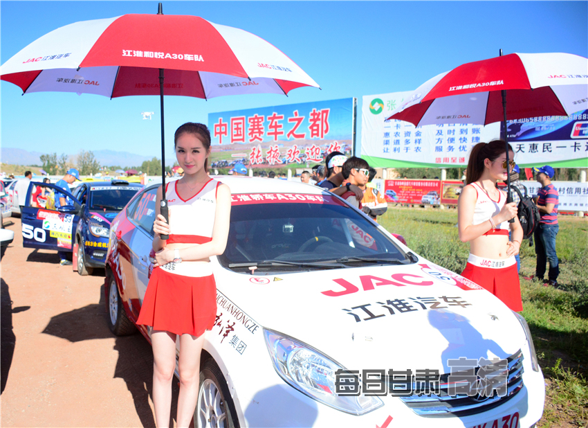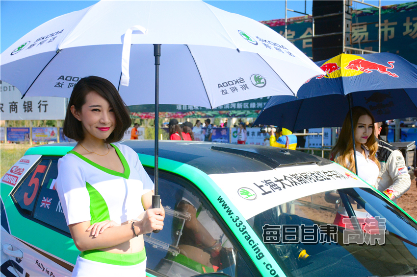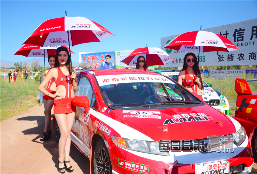 盛夏的甘州骄阳似火,广袤的张掖国家沙漠公园热浪滚滚,车轮声,呐喊声一阵盖过一阵,比那似火的骄阳和滚烫的沙砾更多三分热情。中国汽车拉力锦标赛2015年度第二站的比赛正在这里激情竞速。本站赛事吸引了包括明星车手韩寒在内的118名国内外知名优秀赛车手参赛。7月24日上午的比赛中,一边是赛道上被赛车涌起的沙石形成的浪涛,另一边,青春靓丽的赛车宝贝在沙漠戈壁上“爆晒”颜值,美丽、时尚、火热、奔放完美结合,现场观众大饱眼福。(每日甘肃网记者董文龙甘州报道)