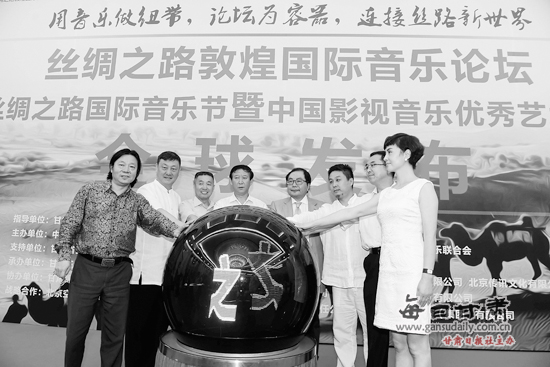 当日,丝绸之路敦煌国际音乐论坛在北京举行全球发布活动,宣布整个项目将从7月下旬持续到10月中旬,除在兰州举行论坛开幕大典,在敦煌举行的高峰论坛、音乐节嘉年华和闭幕式外,还将邀请中外著名音乐家参加“寻找失落的音符”重走丝绸之路河西走廊段活动。论坛期间,还有多场音乐会以及来自丝绸之路沿途各国的演出。举办方希望此次论坛成为中国音乐与国际音乐汇聚、交流、融合的平台。新华社照片