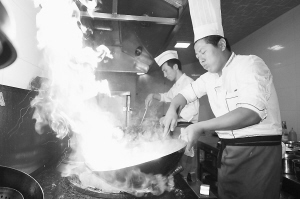 高温不算还得加炉火,厨师还是蛮拼的。