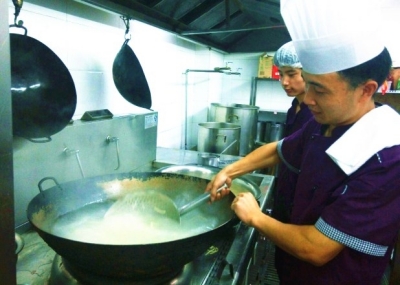 “我们的排风系统完备,所以比其他饭店的厨房要凉快些,”王亮云表示,在其他一些餐厅,厨房没装空调,气温会变得相当高,厨师工作起来往往是浑身大汗,相当难受。
