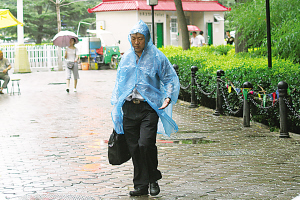 昨日下午4时许,烈日渐渐的被一束束云彩遮挡,随后豆大的雨点稀稀落落的降落下来,十分钟后,雨滴变为阵雨,伴随着阵阵电闪雷鸣,越下越大。在白银路附近,风浪带着雨滴,密集雨点瞬间让干燥的马路变得湿滑起来。雨滴落在人脸上,让人几乎睁不开眼。有一些行人,挽起裤腿冒着大雨用包护住头部赶路。