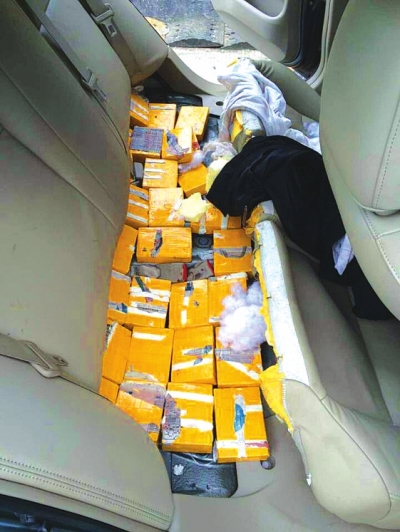 藏在轿车后座下的毒品犯罪嫌疑人当场被抓获