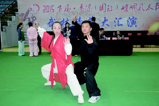 比赛现场,两个金发碧眼的法国人吸引了众多目光。他们虽生着一副西方人的面孔,眼神中却有着东方习武之人特有的刚毅。他们为现场观众带来了精湛的中国养生功表演。“我们都是中国武术的爱好者,此次来看看闻名于世的崆峒武术,早上我们刚去了崆峒山,美丽的风光令人着迷。”法国友人威廉大度由于深深迷恋中国功夫,自上世纪九十年代以来已无数次到过中国各地及崆峒山习武,如今他担任法国无极世界传统文化发展协会副会长。他告诉记者,学习中国功夫在法国很流行,无论是年轻人还是老年人都很喜欢,主要用于养生保健。