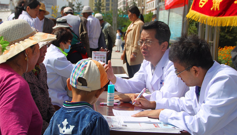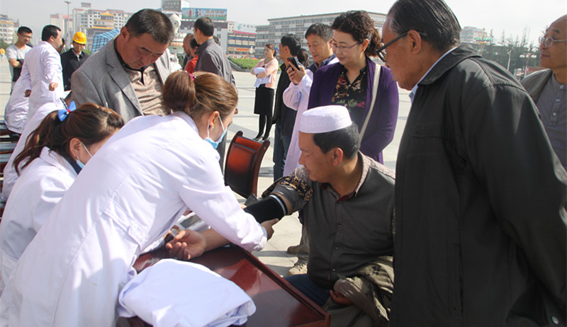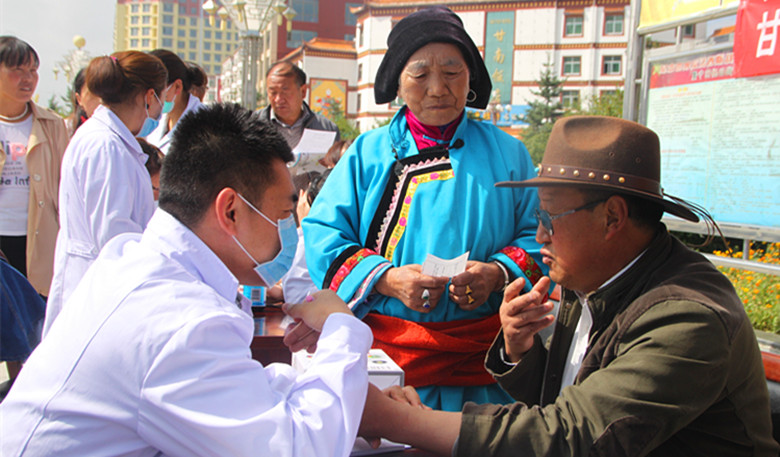 为期三天的培训活动结束后,甘肃省二院感染病区主任张文杰带领医务人员与甘南隆宝缘医院的医生一起,在合作市广场为当地群众进行义诊活动。藏族群众多吉才让告诉记者,他们上一趟兰州看病,病人和家属的车费加食宿费用就得几千块钱,现在省二院的专家到家门口为他们免费看病,不光省钱,还省事省时。