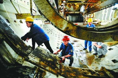 虽然在距地面20米的隧道内,但盾构机正常运转起来的温度仍高达30℃以上。