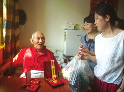 8月28日,皋兰路街道周家庄社区对今年92岁高龄的辖区抗战老兵刘善明进行慰问。住在耿家庄8号304室的刘善明老人精神很好,他的事迹也曾被《兰州晚报》报道。看到社区的工作人员到家里来探望他,老人笑得很开心。记者刘怡麟摄