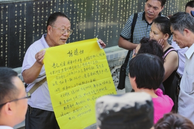 由于抵达兰州国学馆还要走一段山路,等小伙赶到现场时身上的T恤已经渗出了汗渍。工作人员查验他的身份证后,立即办理了信息登记。