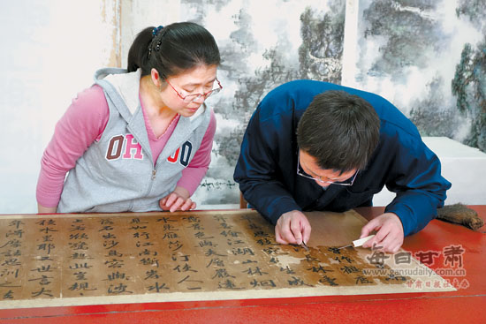 张文军在师从我省唯一书画装裱高级技师陈一珀期间,4年装裱字画两千余幅。