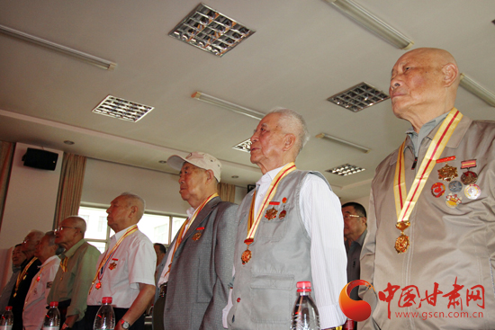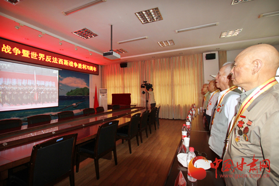 来自甘肃各地的抗战老兵们汇聚在此,观看阅兵仪式。