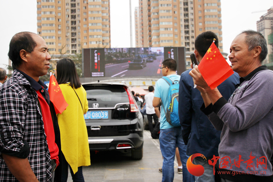 前去赶车的人们在兰州火车站观看了阅兵仪式,并记录下了这重要的一刻。