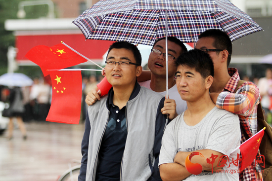 在兰州火车站,人们纷纷拿着小红旗,内心无比激动。