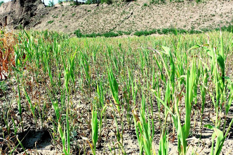 陇西县云田镇大片玉米叶子蜷曲枯黄,有的已被晒成了干草。