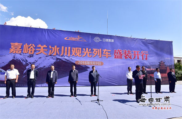 9日13时,嘉峪关市委书记柳鹏宣布嘉峪关“冰川号”观光旅游列车发车,7529/7530次列车缓缓地驶出嘉峪关车站,向目的地镜铁山站驶去。据了解,该趟列车全程运行2小时37分,每日6时25分从嘉峪关站发车,9时02分到达镜铁山车站;当天下午17时从镜铁山站发车,19时39分返回嘉峪关站。
