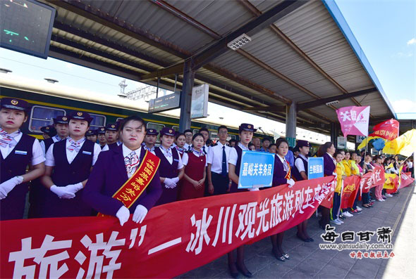 “兰铁旅游”一一冰川观光旅游列车盛装开行。(记者韦德占/摄)