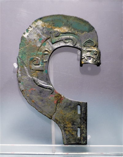 而在灵台白草坡出土的奚国青铜兵器,数量之大,造型之丰富,让人目瞪口呆。其中一件人头青铜戟,让无数人目瞪口呆,这件戟上的人头图案,浓眉深目,高耳巨鼻,带着浓浓印欧白色人种特征,可见,这里墓葬等级之高。